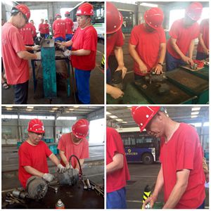 參加此次技術(shù)大比武的人員很多都是有著三十年維修經(jīng)驗(yàn)的老師傅,平均年齡超過了55歲。雖已不再年輕,但他們手上的功夫卻更顯純熟。三十分鐘的比賽時(shí)間里,汗水順著臉頰滴落,卻沒有人去伸手擦拭,任憑汗水打透紅色的衣衫,他們用忘我的工作精神和積極的工作態(tài)度為年輕人樹立正確的榜樣,做到真正的傳、幫、帶。也只有這樣才能帶出好徒弟,為公司帶出真正需要的技術(shù)人員,公司才能保障良性持續(xù)健康的發(fā)展。
