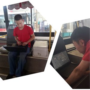 此次技術(shù)比武中,有兩位年輕的技術(shù)骨干,薄海東就是其中一個(gè)。他個(gè)頭兒不高卻能發(fā)揮優(yōu)勢(shì),在需要鉆車底、大個(gè)子進(jìn)不去的地方他都積極向前。而且骨子里也有一股倔強(qiáng)勁兒,他不但各項(xiàng)修理技術(shù)手到擒來而且用電腦查車輛問題也是一把好手,綜合能力突出,體現(xiàn)了新一代公交修理人的風(fēng)采。