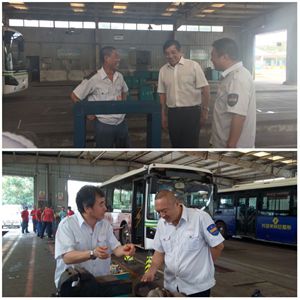 2018年7月5日上午,公交一公司在風(fēng)井樞紐修理車間開展了一場(chǎng)"安全生產(chǎn)、技術(shù)、技能大比武"活動(dòng)。比賽項(xiàng)目包括:電腦檢測(cè)排故障、清洗節(jié)氣門、組拆修發(fā)動(dòng)機(jī),更換調(diào)節(jié)碳刷等??偣竟?huì)主席王學(xué)軍、副主席石云龍和技術(shù)部檢驗(yàn)人員來到現(xiàn)場(chǎng)與一公司經(jīng)理王國(guó)利等管理人員車間全體維修人員進(jìn)行此次活動(dòng)的經(jīng)驗(yàn)交流。