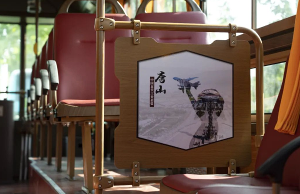 車身外形與眾不同,車內(nèi)文化也極具特色。交發(fā)集團(tuán)以“一車一主題”為原則,打造了工業(yè)歷史、旅游景點、特色美食、戲曲文化等多個主題文化車廂。利用燈箱、擋板、拉手等車內(nèi)設(shè)施,以圖文并茂的形式介紹唐山文化,串起唐山百余年發(fā)展的歷史脈絡(luò)。鐺鐺車成為了傳遞歷史文化的“流動課堂”,整個車廂營造出濃厚的特色文化氛圍。